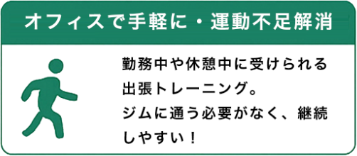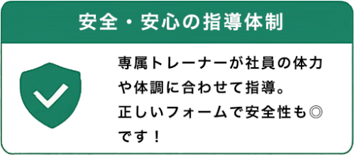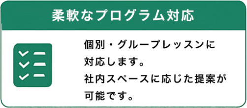 福利厚生に“運動”という新しい選択をしてみませんか。専門トレーナーが御社に合わせたプログラムをご提案。